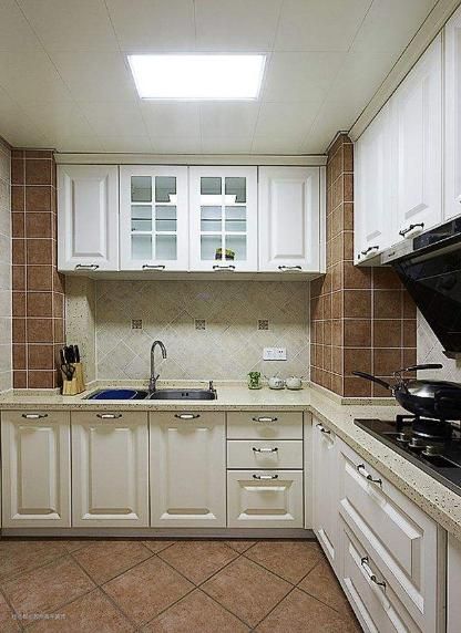 3、橱柜设计:无论是顶柜地柜都要避免卫生死角,不要在角落处留空;顶柜的最佳高度是离地1.6米处,否则太高拿东西不方便,太低会显得室内空间压抑。