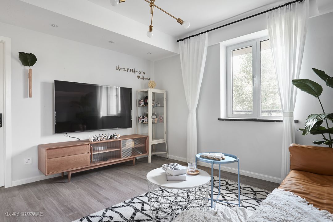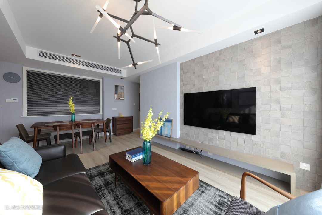 ▲ 对于简约风格来说,大白墙电视机背景墙也比较常见。这个时候可以通过家具、以及其他空间的润色来提升整个空间的设计感。
