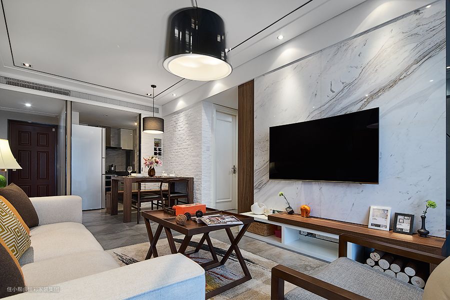 ▲ 大理石材质的电视机背景墙,以美观的造型,配合大理石独有的天然质感以及纹理,打造尊贵、高级的家居空间。