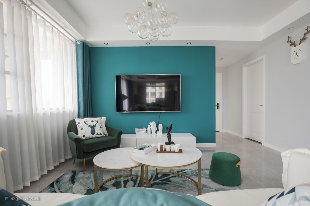 ▲ 乳胶漆是性价比最高的材料之一,加上现在流行简单的硬装,流行北欧、日式、简约风格,乳胶漆是电视背景首选。