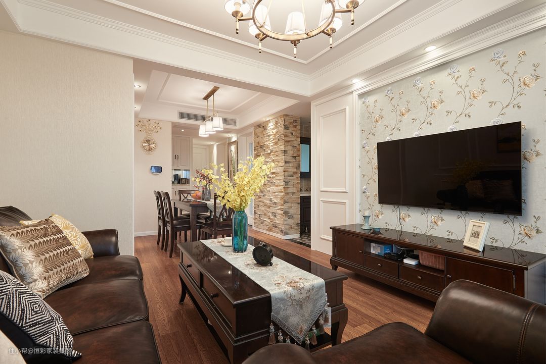 ▲ 仿古文化砖背景墙深受美式风格的偏爱,而作为电视机背景墙放在客厅显眼的地方也是十分不错的选择。