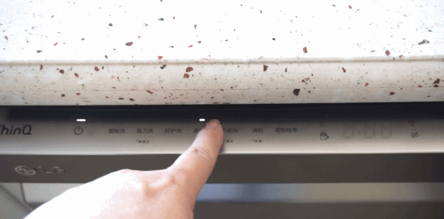 LG洗碗机操作程序一键完成,设计了10个功能按键,8种模式可选,分别是智能洗、强力洗、呵护洗、清新洗、节能洗、涡轮、定制程序、设备清洁、漂洗和快速洗。