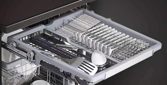 在结构上与西门子就有很大的不同,LG的洗碗机是一个三层的结构,相比西门子的多了一层筷子和刀叉架。