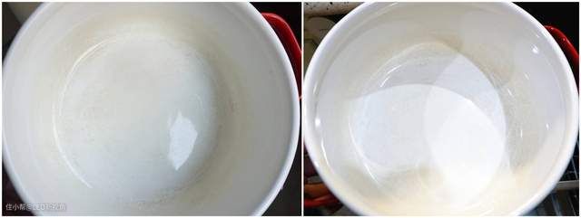 两个搪瓷锅(前面为汤锅,后面为奶锅)都是因为油炸了食物后,底部留下黄色的焦底,用了各种洗涤剂都无法清除,再看两款洗碗机下效果对比。实际清洗效果没有清洗咖啡杯那么彻底,底部依然可以看到有淡淡的污渍。西门子清洗的那个奶锅,侧面的污渍完全没有去除,依然存在,不过这个和锅摆放的方向应该也有关系。