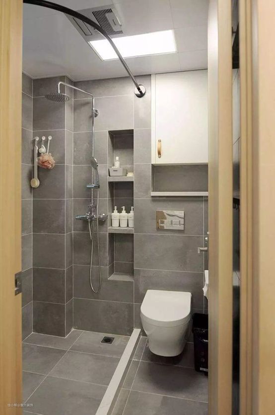 但需要注意的是,很多人在理解上本末倒置,强行在卫生间里做壁龛。比如为了壁龛砌上一堵墙,为了壁龛强行把墙壁加厚——壁龛的本意是利用现有的空间,而不是创造可被利用的空间(有点拗口)。