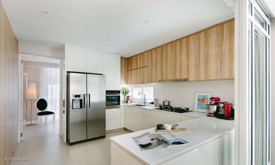 近几年来,宽门洞配上玻璃门的半开放式厨房已是很多网红款式,不仅得益于它的便捷,其采光性也很不错。除此之外,高门洞还能为室内增加更多的开阔感。