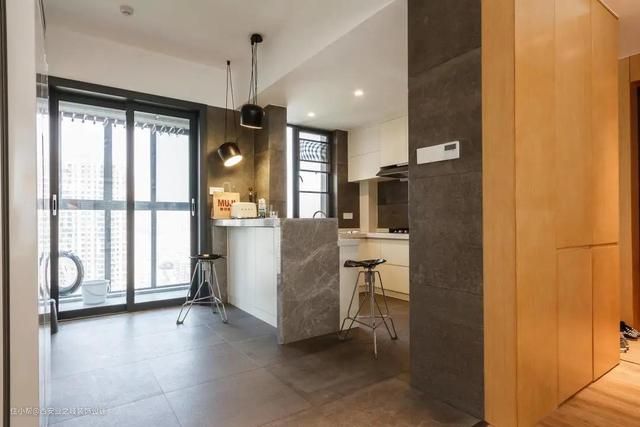 所以在2个厨房的中间,设计了一个岛台,不仅形成自然的空间分割,同时让2个厨房的操作区增加,还形成了一个小型就餐区。