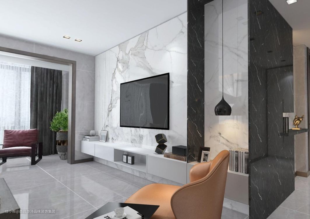 仿灰色大理石质感的瓷砖,贴在背景墙上,带来的空间感也是更加简约时尚而高级。