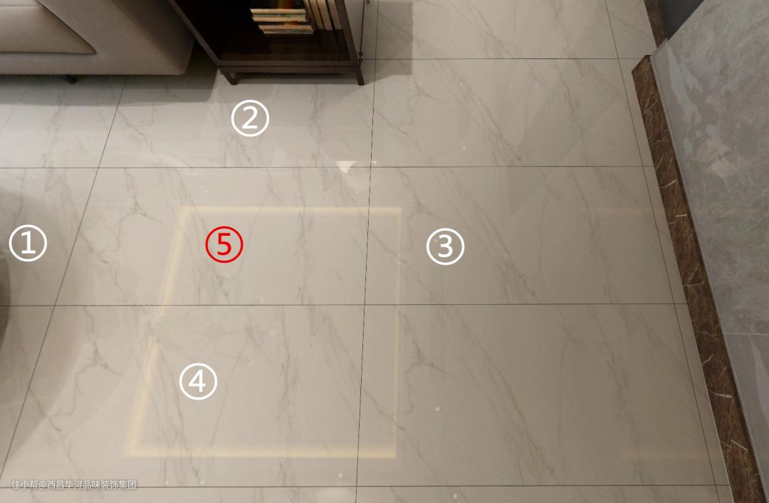 ▲如图,⑤的纹理可以与上下左右的①②③④分别连纹成为一个完整的图案,这种就叫连纹瓷砖了。