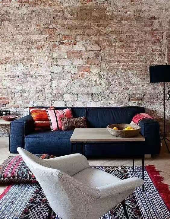 搭配指南:焦糖色的沙发比较时尚,多搭配几何纹样地毯我、浅色系墙壁。