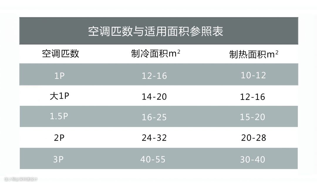空调匹数是形容空调的一个功率单位,常见的空调匹数及对应面积可以参考下表。匹数并非越大越好,合适的才是最好的。