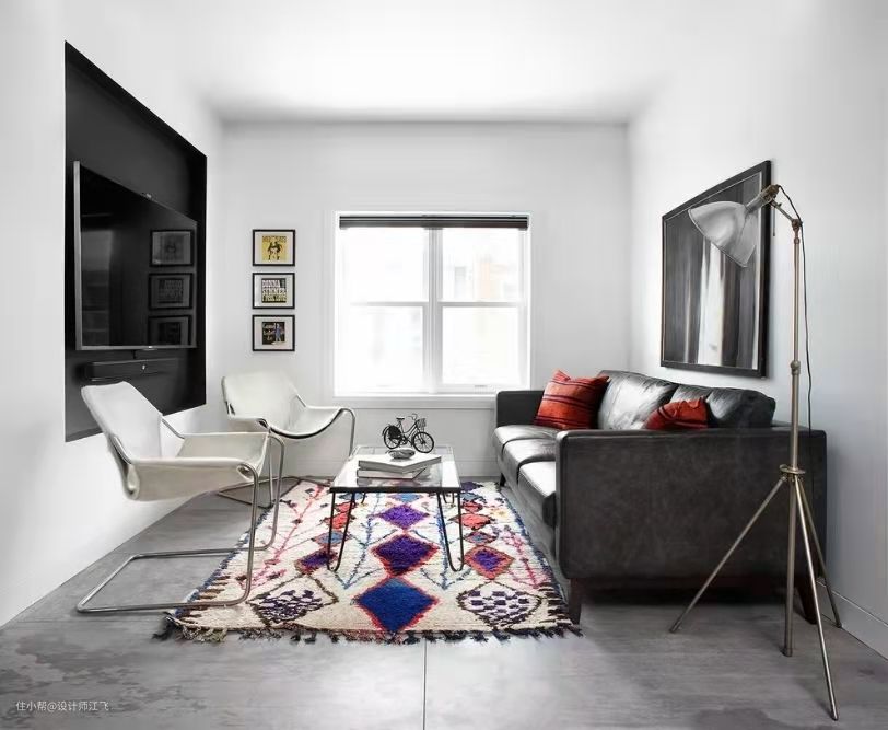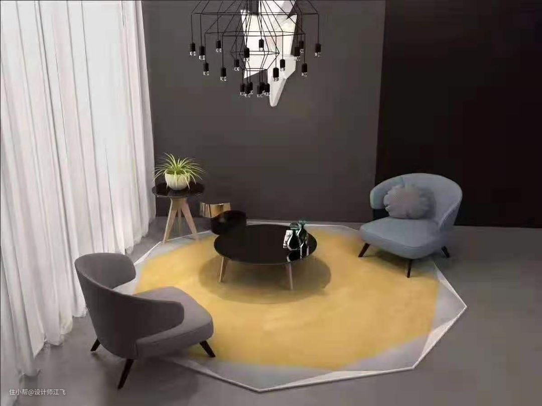 如果空间的家居选的颜色特别亮,那么地毯可以挑选,颜色偏暗的。