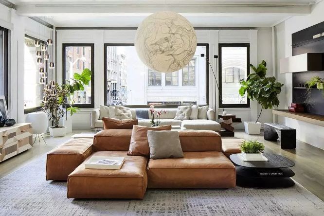 - ✍铺法:当家居居中摆放时,所有的家具都在地毯上。