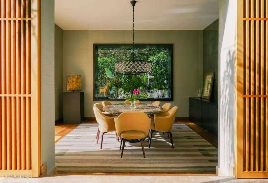 方餐桌选择方形的地毯,圆餐桌选择圆形的地毯。地毯要和人入座后所需的尺寸差不多。