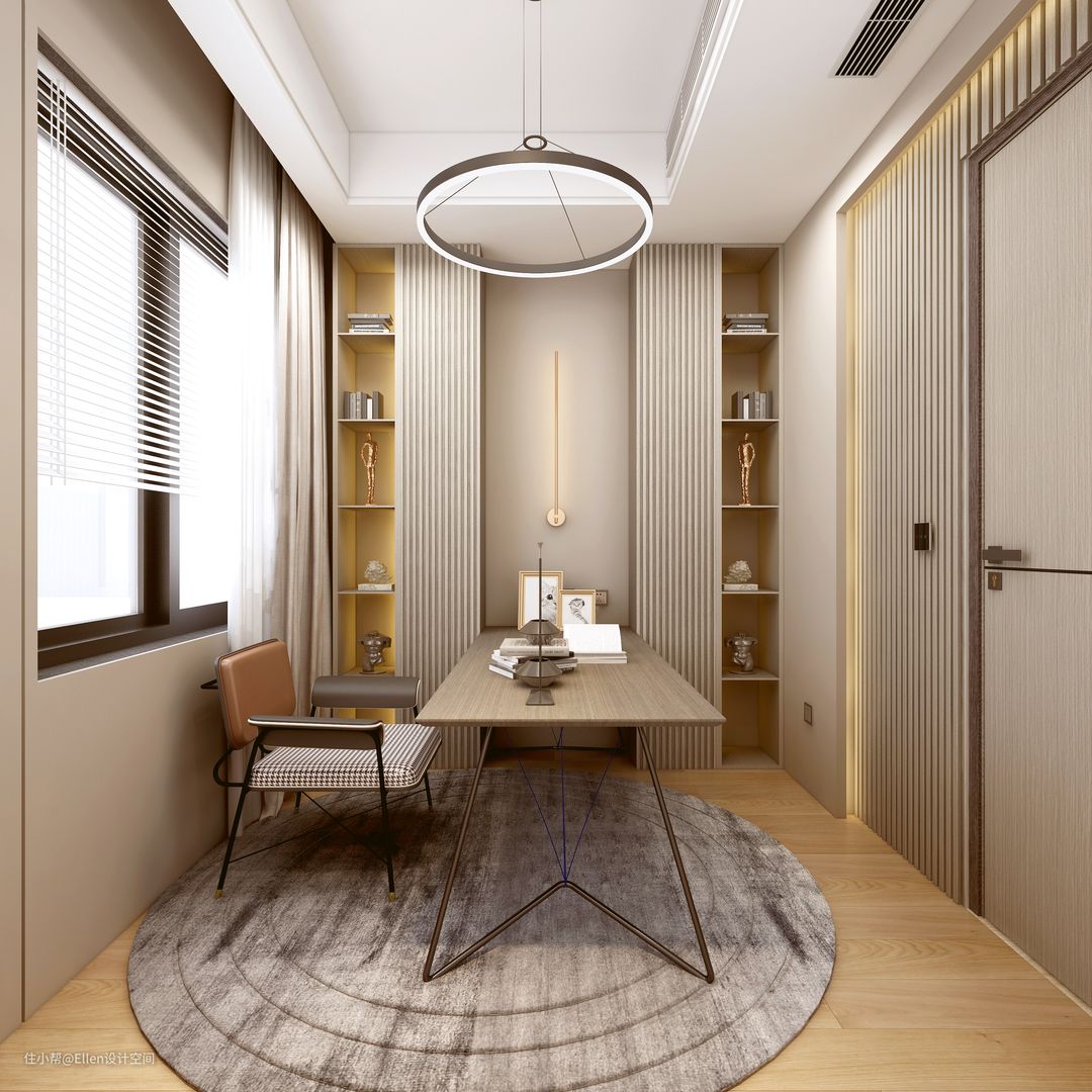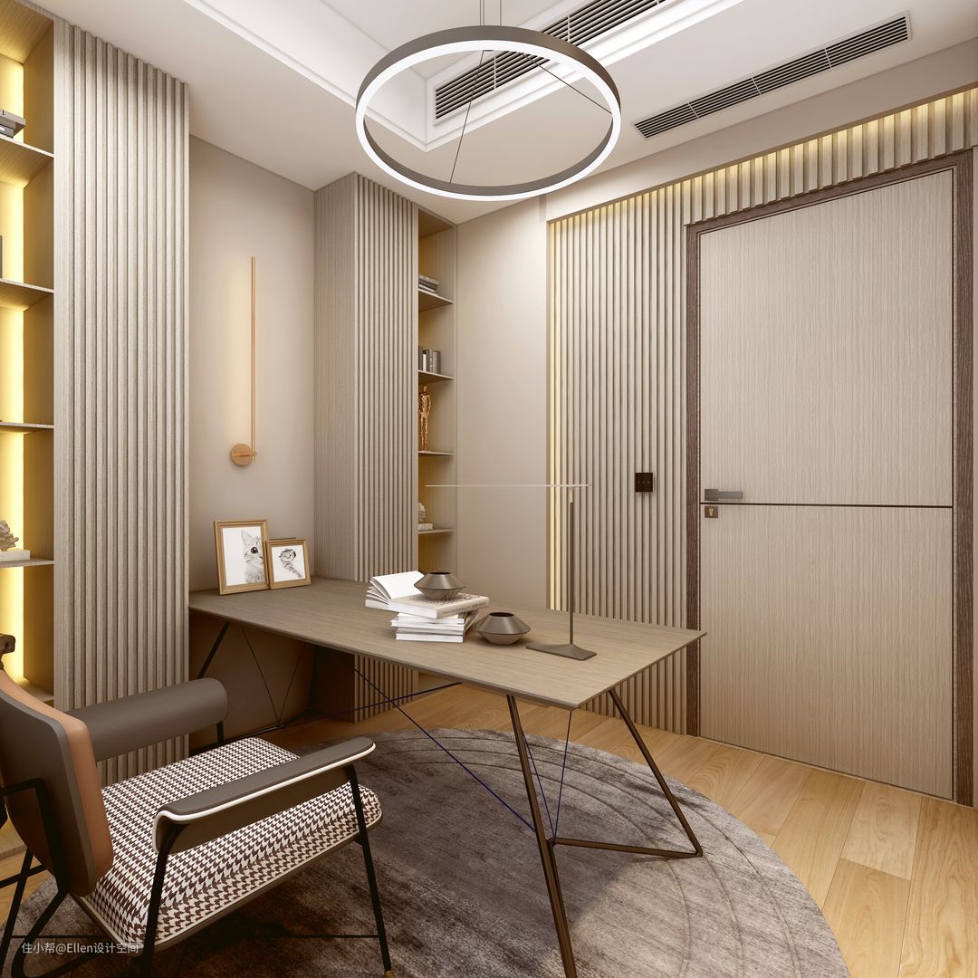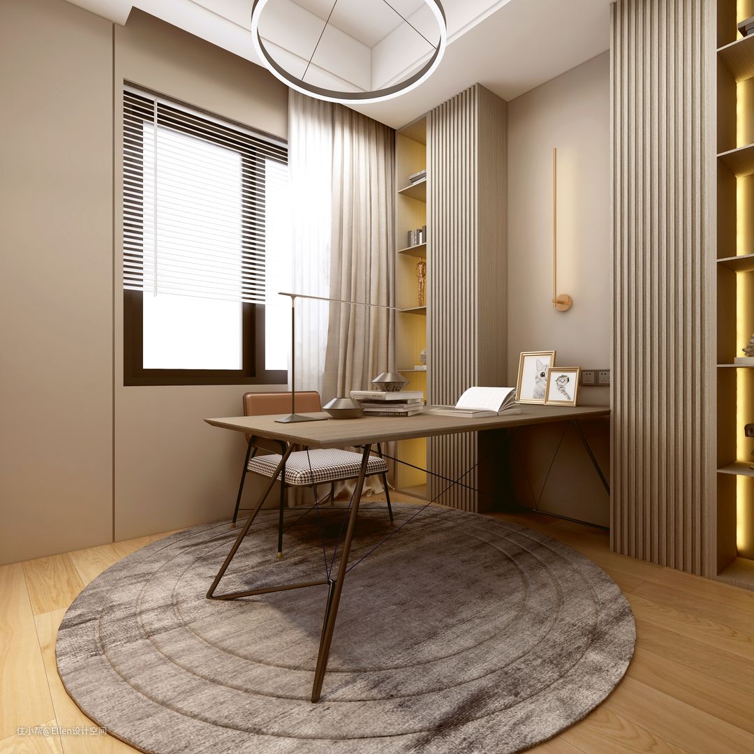 书房设计为大部分可移动的家具,同时将未来改造成儿童房时所需的水电设计好,书柜部分将来可做部分拆除改造。