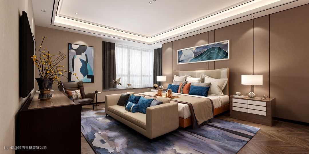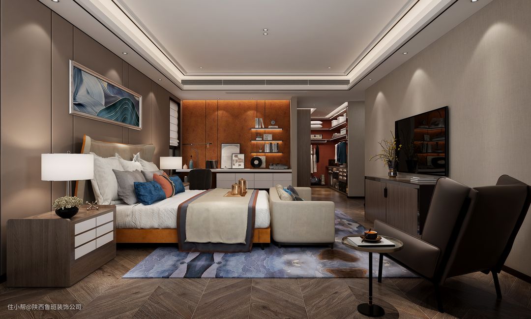主卧室采用浪漫典雅的装修元素来装饰空间,让家居环境呈现出现代简约、低调时尚的氛围,同时又不缺乏浪漫与唯美,使得居住的人们更好的享受生活的真谛。