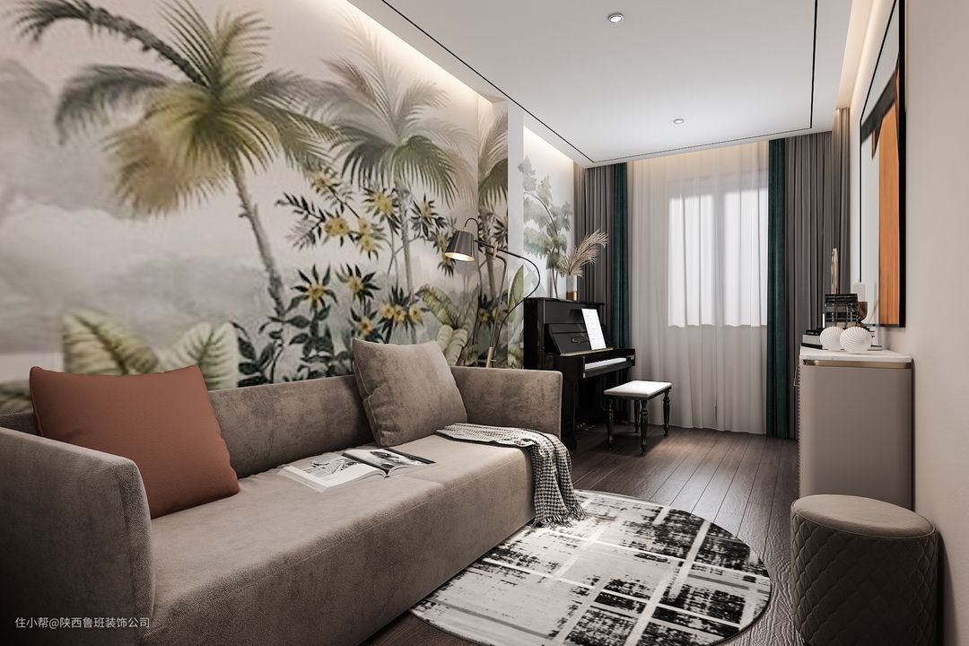 放眼过去,宽敞的客厅区域,偌大的窗户,很自然的将自然的光线引申到屋内,作为休闲区域,客厅在整个居室里占比至关重要,所以设计师在满足正常的尺寸要求后,又留出了足够大宽敞空间活动。