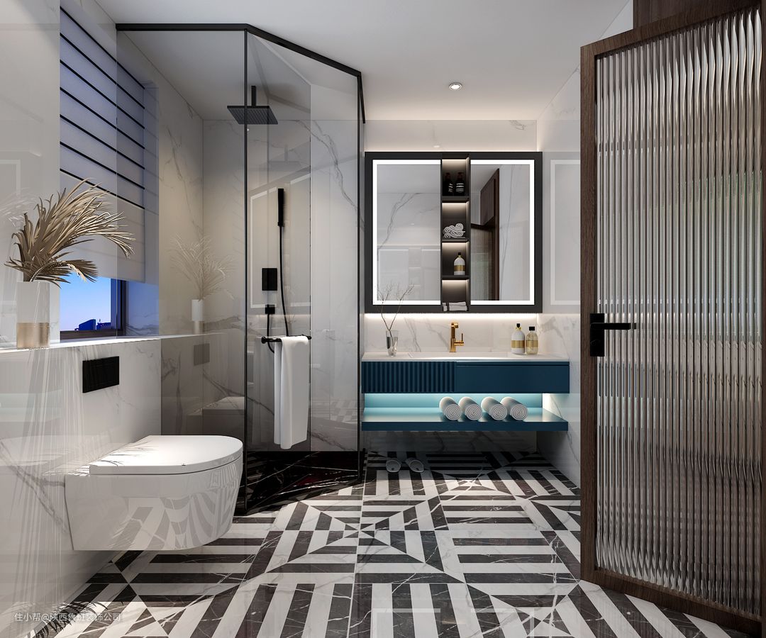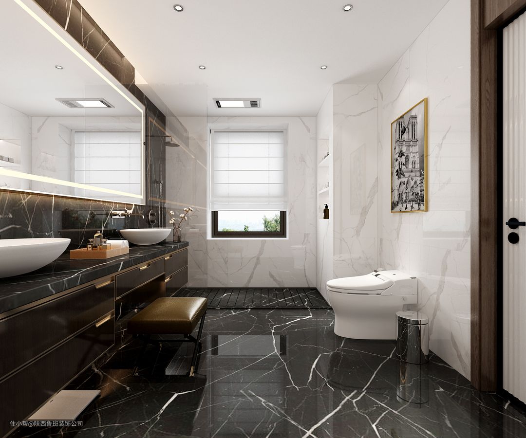 不同区域的卫生间色调也做了区分,黑与白的经典结合,双台盆的设计都不难看出设计师对于居室里装修的用心,力求为业主打造出别样的家居氛围。