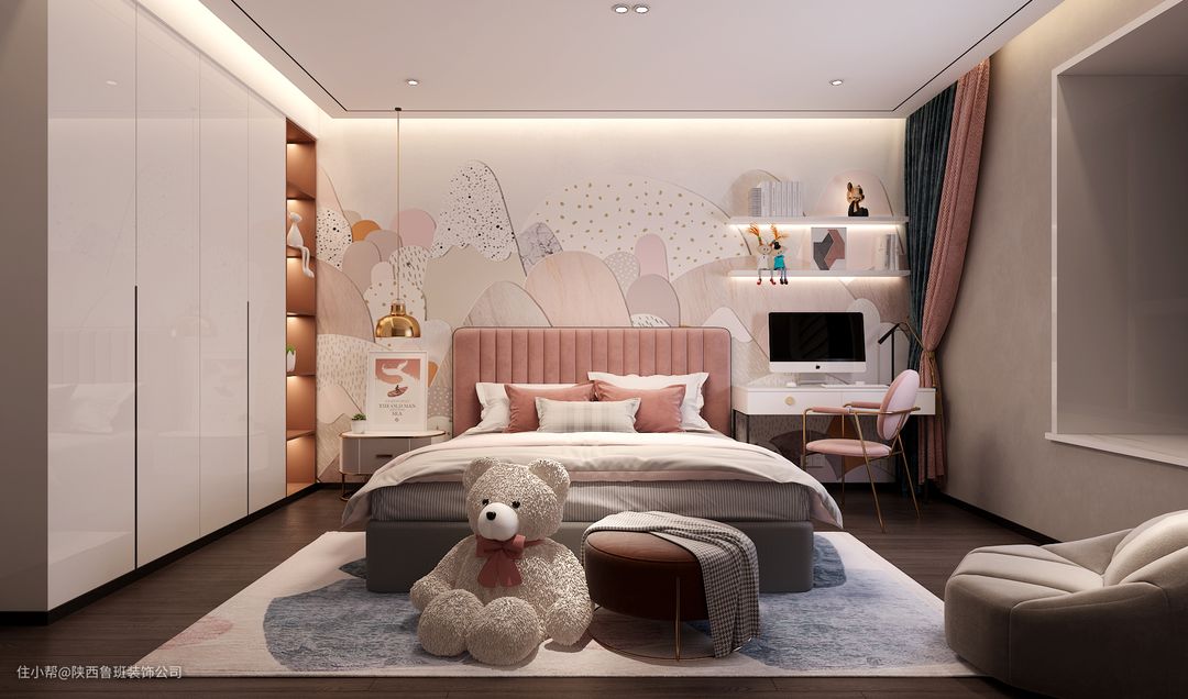儿童房的设计色彩符合孩童的童真气息,欢快、明亮的色彩对于孩子的成长也提供了一定的条件,所以在配色方面,都以明亮的色调为主,对于孩子的成长和身心的培养也起了一定的作用。