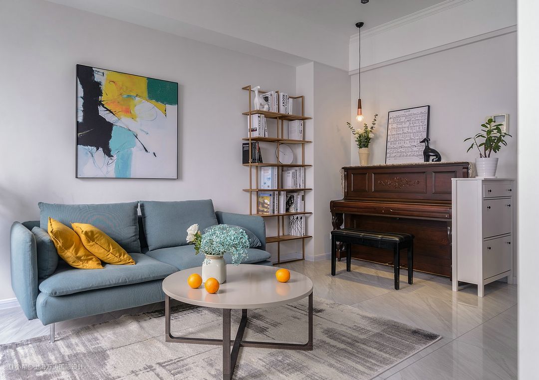 女儿正在学弹钢琴,根据原始房屋结构特点,将客厅一个角落打造成意境十足的钢琴角。旁边的一排书架,还可容纳不少书籍。