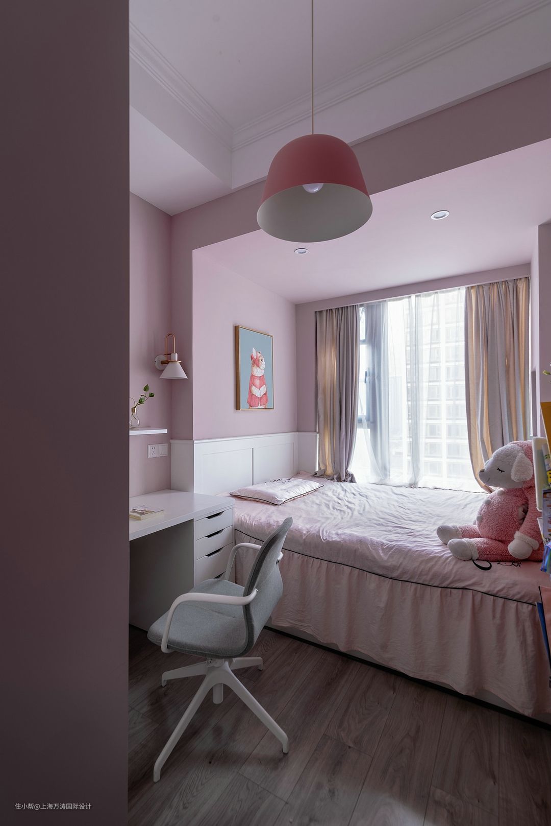 二楼解决儿童房空间小,解决整个空间拐角零碎,设计中最讲究的是点线面归一。在视觉、安全、风水中都非常的有必要。