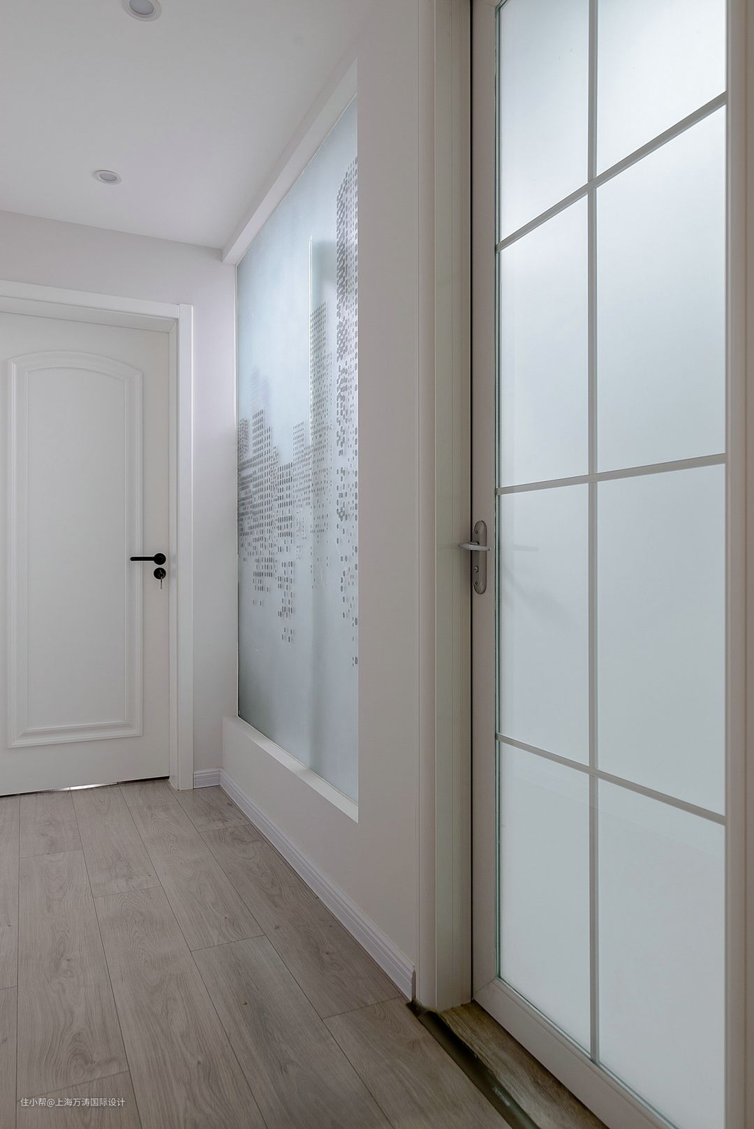 卫生间外墙嵌入大面积磨砂玻璃增加通透感,一堵实墙就压抑很多。淋浴房壁龛设计,增添了储物功能,便于日常置物。