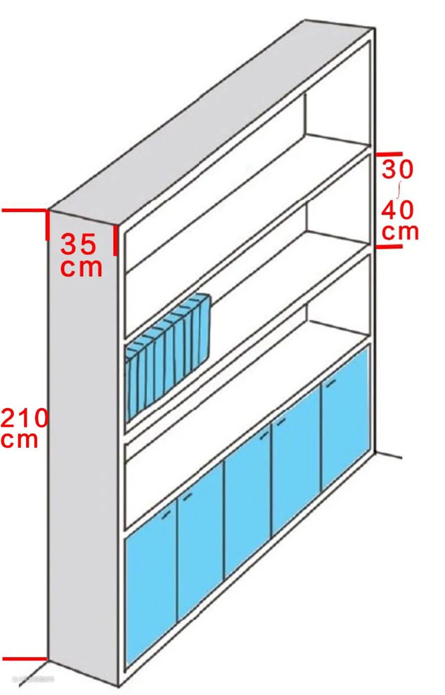 其次需注意,依人体工学来看,超过210厘米的书柜高度不易使用,但收纳量当然比较多;建议将书柜分为上、中、下三层次,常看的书籍放在开放式的中层,不常看或收藏的书放在上层及下层。