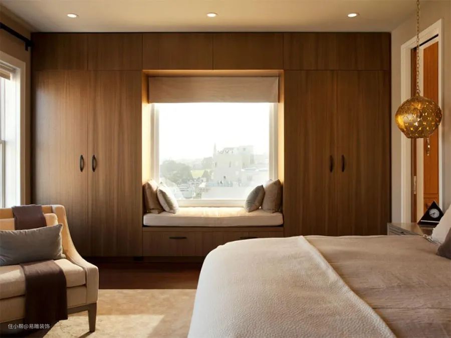 上述3款多奠基在原始户型已有飘窗,若家居属于无飘窗布局,又想拥有它的功能性,设计师建议挑一个周边空间相对宽敞的窗户,以柜体、飘板、置物架等工具自制飘窗;其中,打一圈"柜子"是专家很推荐的设计。