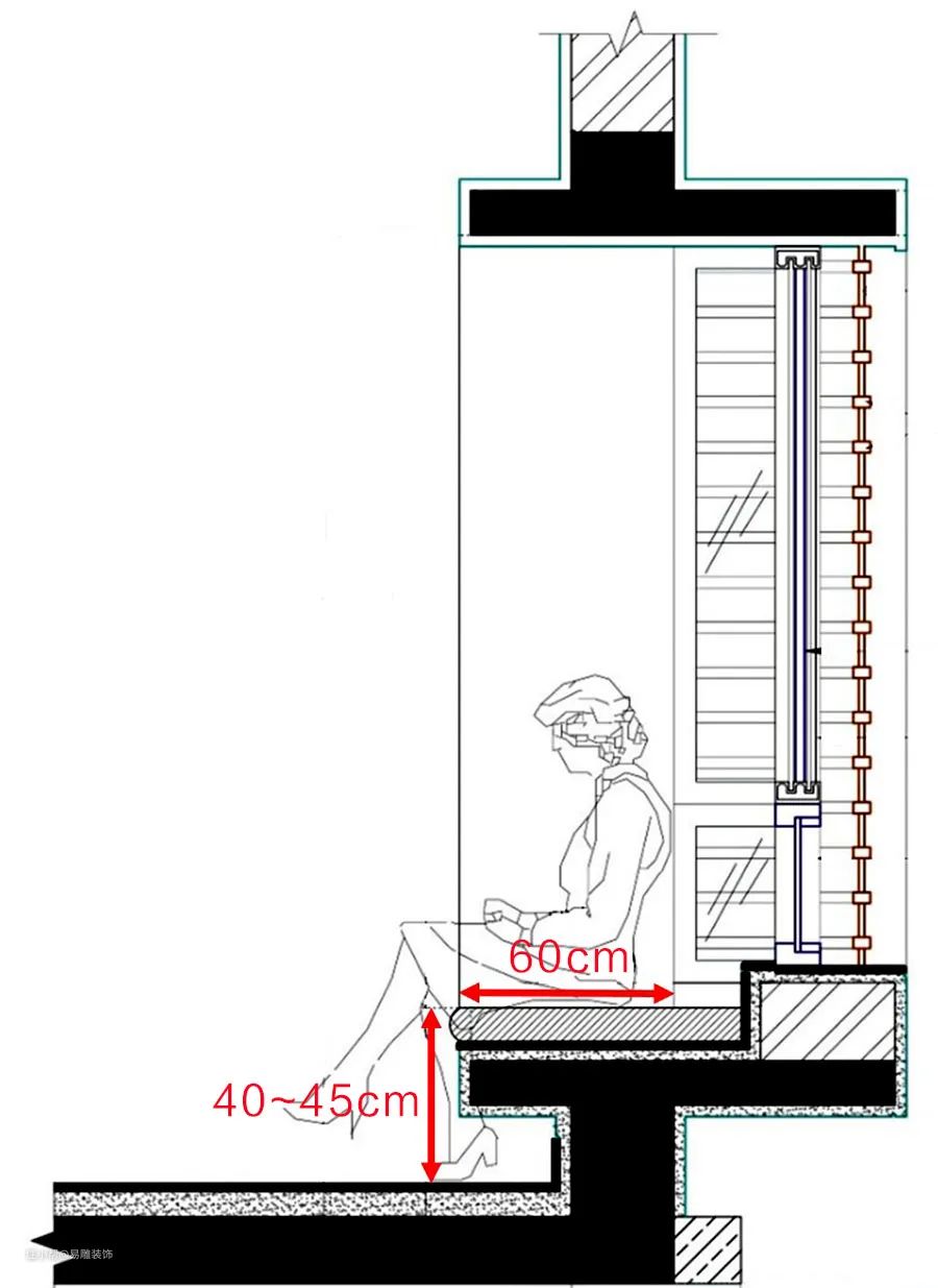 若计划装修坐卧功能的飘窗,尺寸就要抓紧,才不会出现过高、过矮,或椅板过短的状况。相关尺寸如下: