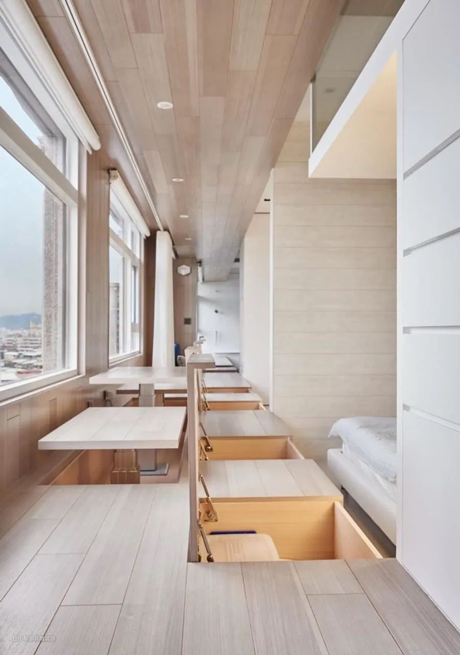 快试试在窗边打一圈柜子!自带椅子、书柜、办公桌,实用性超级高