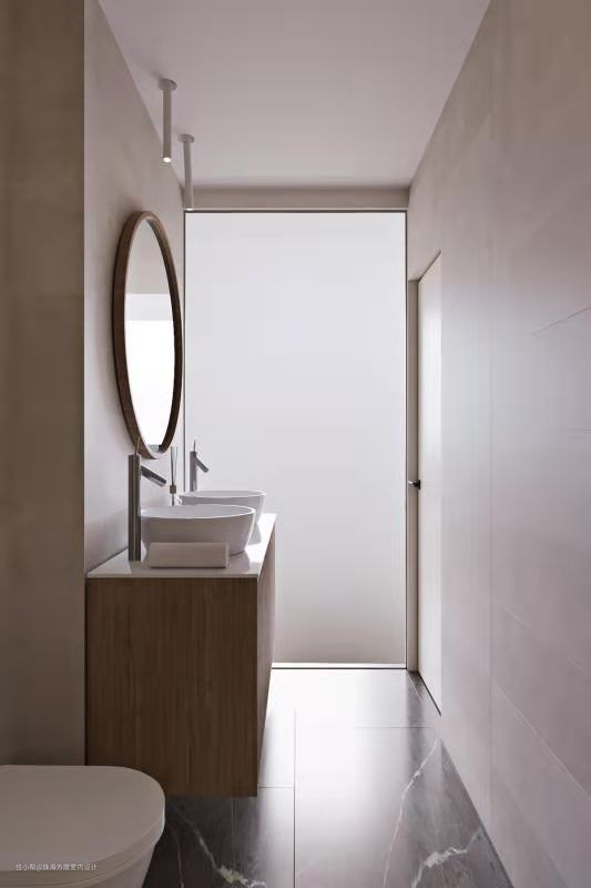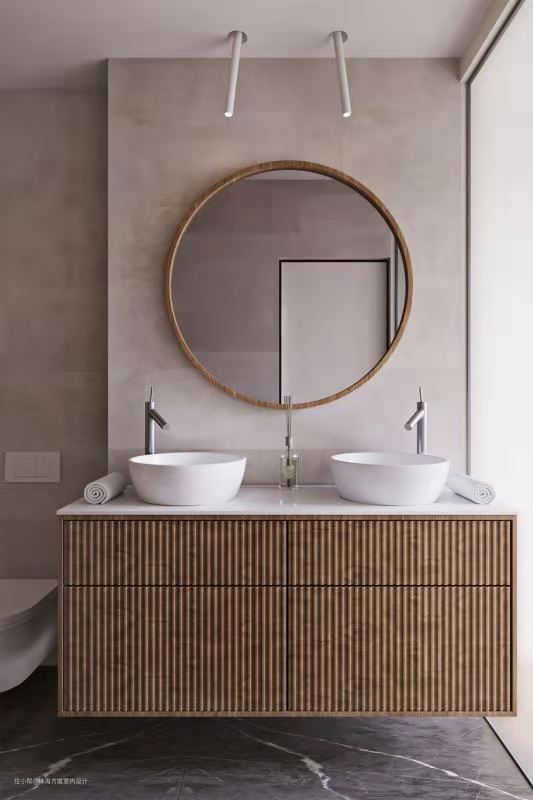 条纹的木肋门为主浴室的双水槽增加了质感,更显风格。这套高冷中不失温暖的装修设计,你喜欢吗?