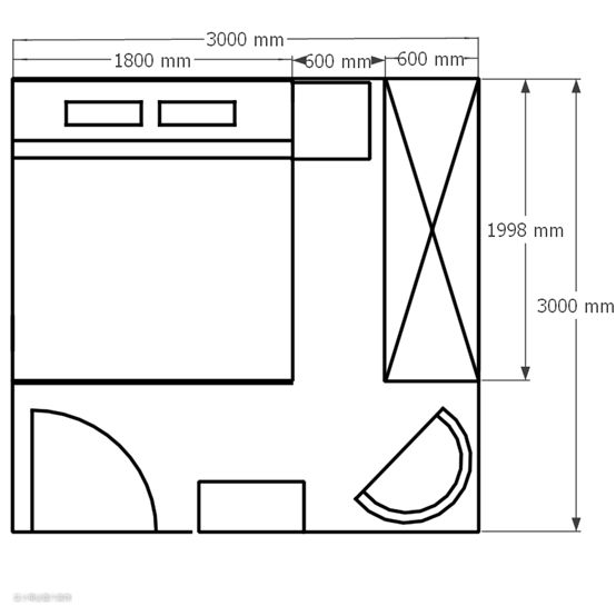 1500mm的双人床刚好够用,床两边各留500-600mm,保证过道不会束手束脚。