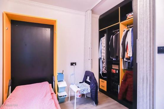 还可以试试做个壁床,平时推上去和柜子连成一体,偶尔来人就拉下来,成了一个正式的卧室。