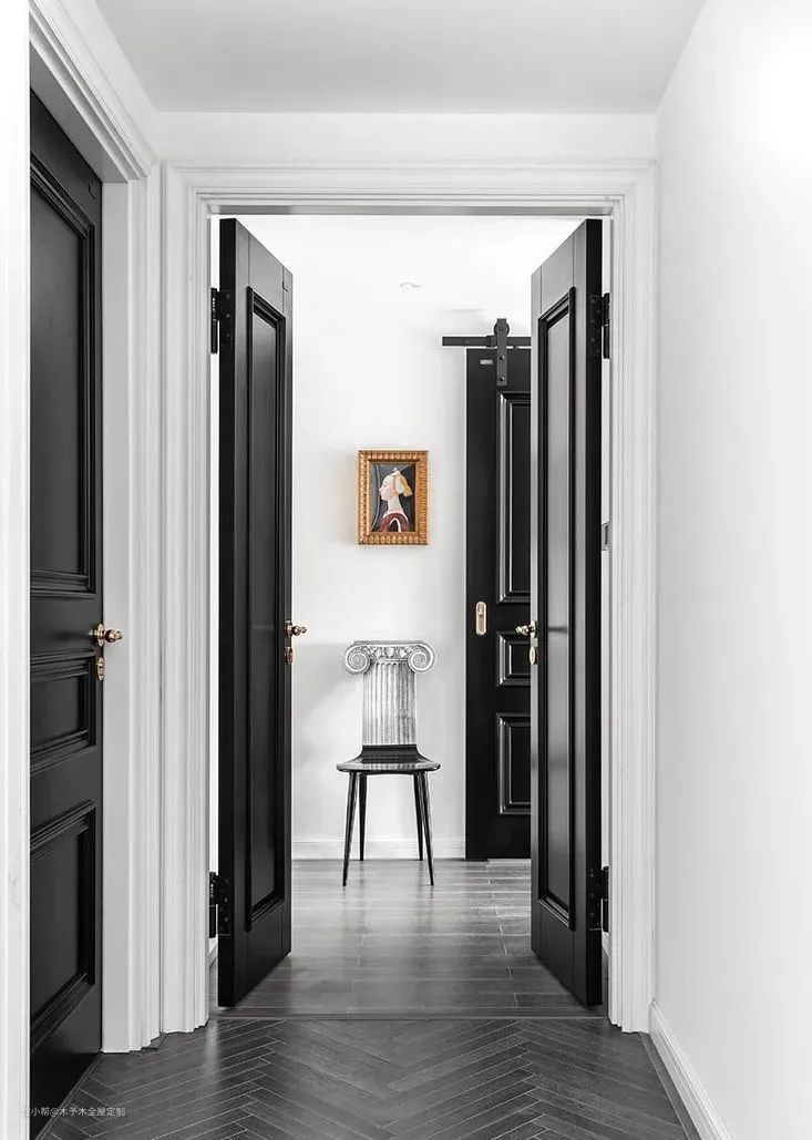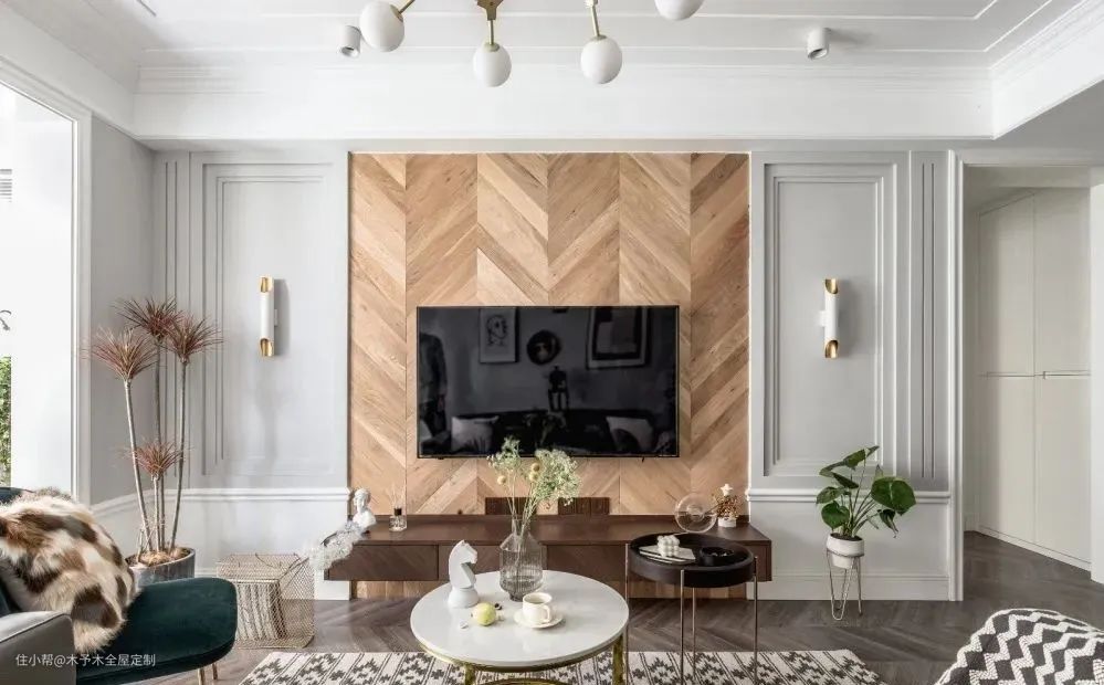 鱼骨拼更多是有种整齐划一的艺术感,丰富的纹理感让空间充满立体感。