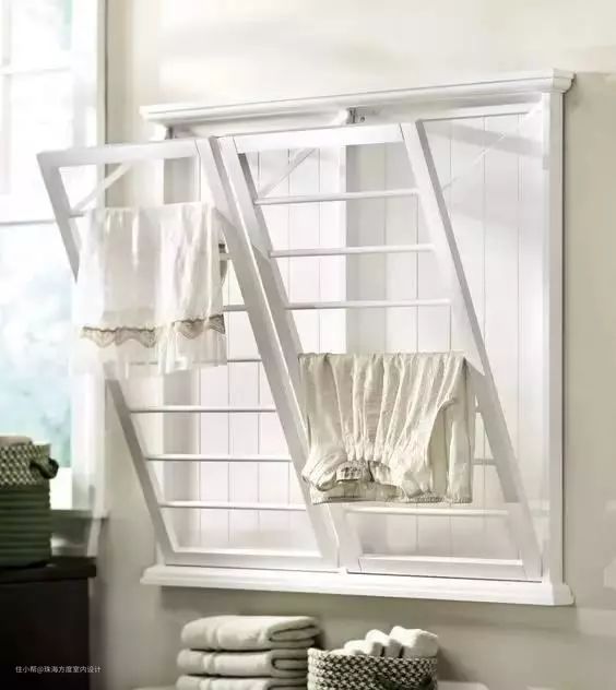 第二种方案,可以根据房型,在吊顶旁边的凹槽处安装一个晾衣杆(近窗户),这样才视觉上看不到晾衣杆,又能满足晾衣服的需求,还是比较可取的。如果房型不满足这样安装的情况下,建议使用烘干机,不会显得凌乱和占空间。