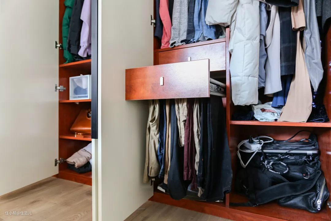 壁橱比衣柜灵活多了,加个抽屉、减个层板、塞个行李箱,调节搭配轻而易举。