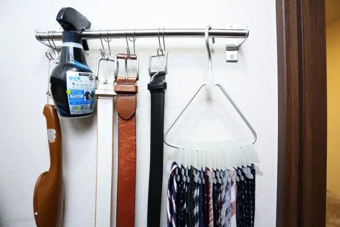 同时,一些衣柜的小空间和死角也可以利用起来,比如内侧柜门,用一些小挂钩,就可以收纳一些首饰和皮带。