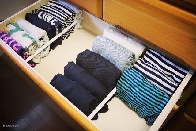 现有抽屉如果不好用,还可以像日本主妇,用伸缩杆在抽屉内进行分区。
