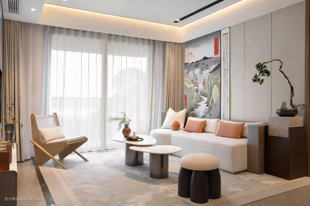家具摆好后,就可以确定挂画、灯饰、窗帘等装饰品的准确位置了。