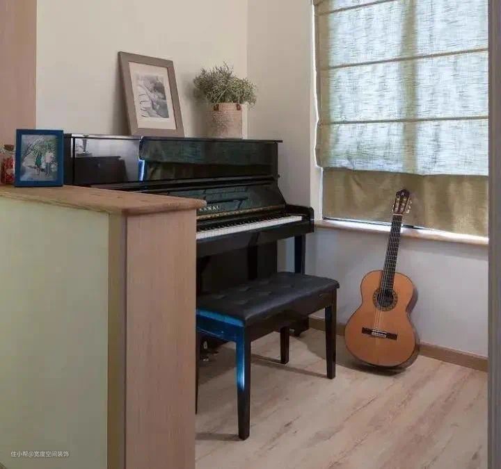 爱音乐的家庭,可以把书房变成琴房,放一架钢琴,就相当于拥有了一个独立的练琴空间,不论是自己用还是给孩子学习,都不会被打扰,还可以放置一些占地较小的其他乐器,比如吉他,小提琴等;