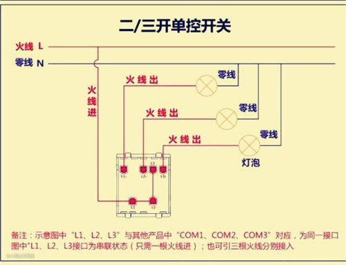 德力西三开开关怎么接线