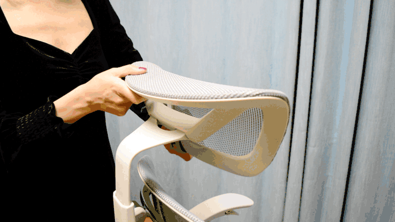 ▼比较特别的是,有谱这款人体工学椅的网面除了使用了比较常见的棉麻纤维和聚酯纤维混合编织之外,还在中间增加了一层杜邦网纱,因此触摸上去的手感也会更加柔软亲肤,不会像传统的网布那样对皮肤产生一定的刺激感。