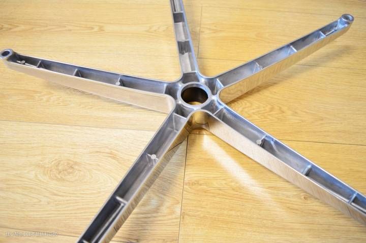 ▼五星撑脚依然是标准的70cm规格,底部可以看到一根根用来增加抗压指数的加强筋,能够在使用中进一步保证结实程度和耐用性。