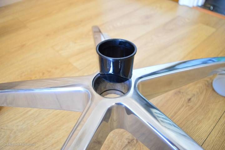▼考虑到未来可能会因为搬家等情况将人体工学椅拆卸,在撑脚中间的孔洞上增加了一个黑色的塑料套,解决了气压棒难以拔出的问题,在细节方面的考虑可谓十分周到。
