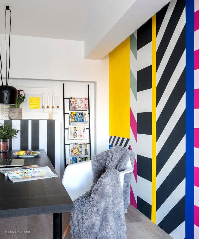 你家墙面,为什么必须一成不变的白色乳胶漆?或者墙纸、墙布、硅藻泥?可不可以来点创意,比如不同颜色的几何图案?或者来一面艺术墙绘?