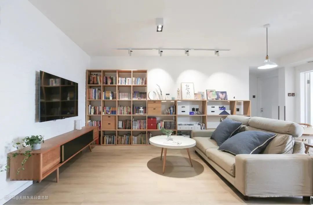 有些人不喜欢在家看电视的话,那么直接把电视墙位置改成沙发墙,沙发靠墙摆放,然后整个客厅就成为一个宽敞的家庭活动空间,舒适而又自然。