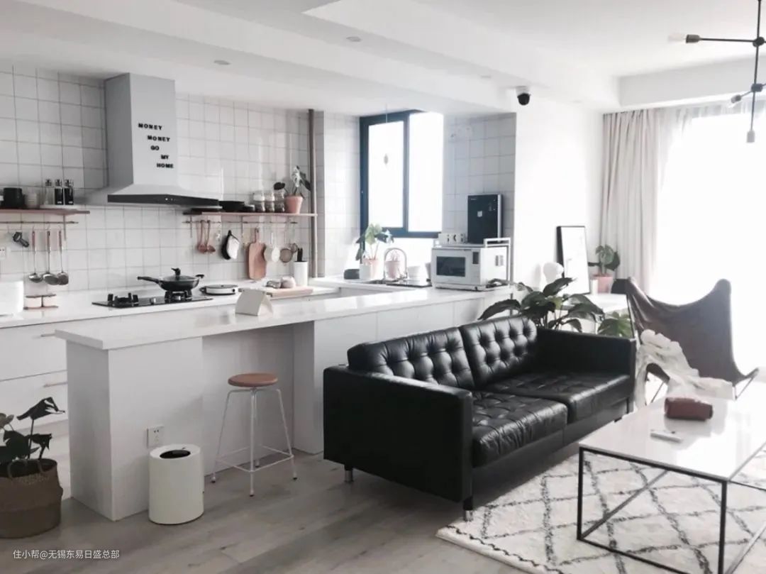 横厅本来就是一个非常宽敞的空间,如果把厨房也做成开放式的,增加中岛台或吧台,这样情调大方的空间感,也是很多人所向往的生活。