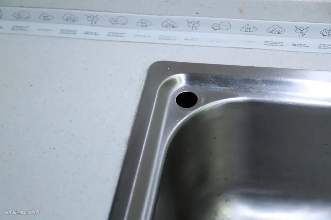 ▲接下来我们看一下这款净水器是如何安装的。首先老房家里的台盆配置了洗洁精出水的孔,这个孔可以用来安装净水器水龙头。