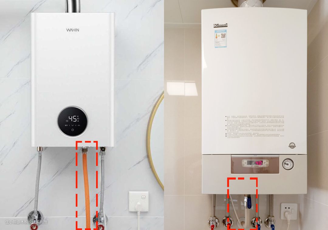 再给大家看两张厨房燃气热水器的对比图,同样一个是整洁,而另外一个则是显得非常乱,问题同样出在墙里面。