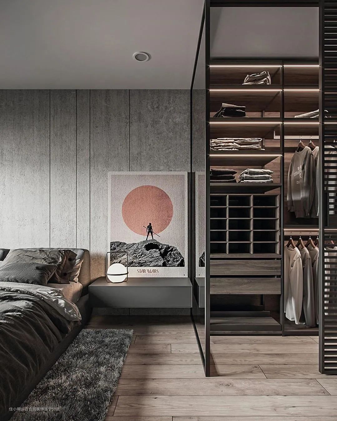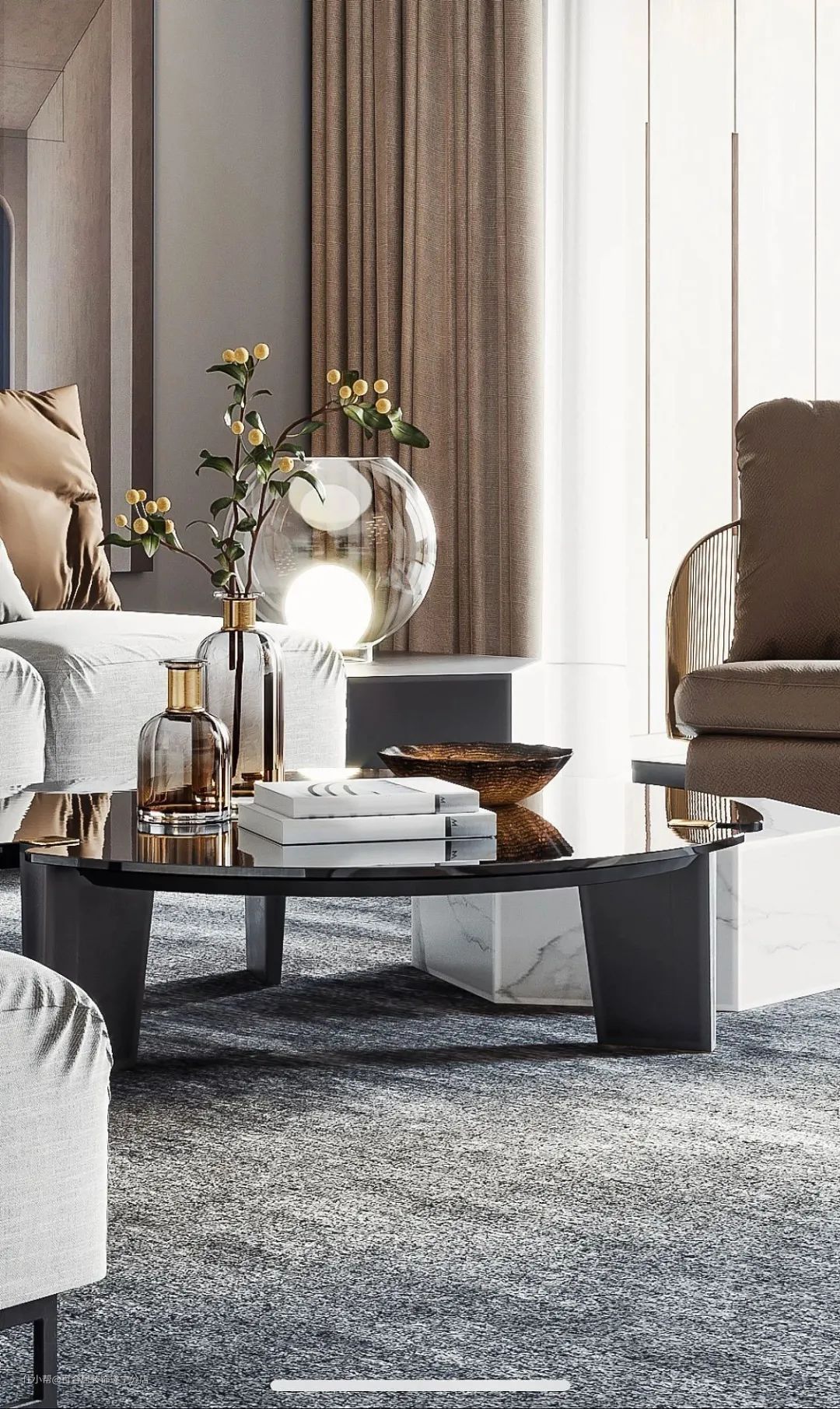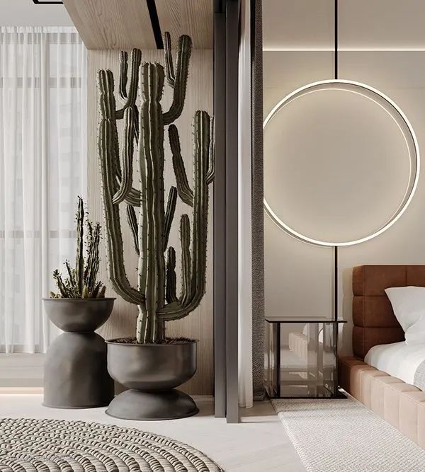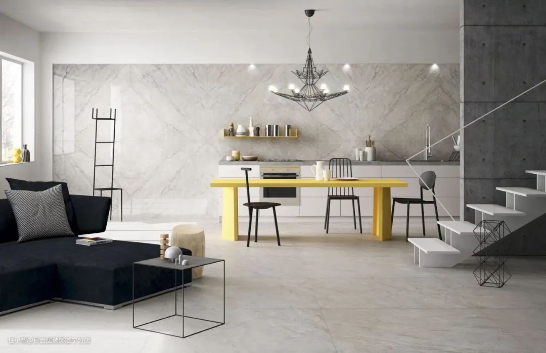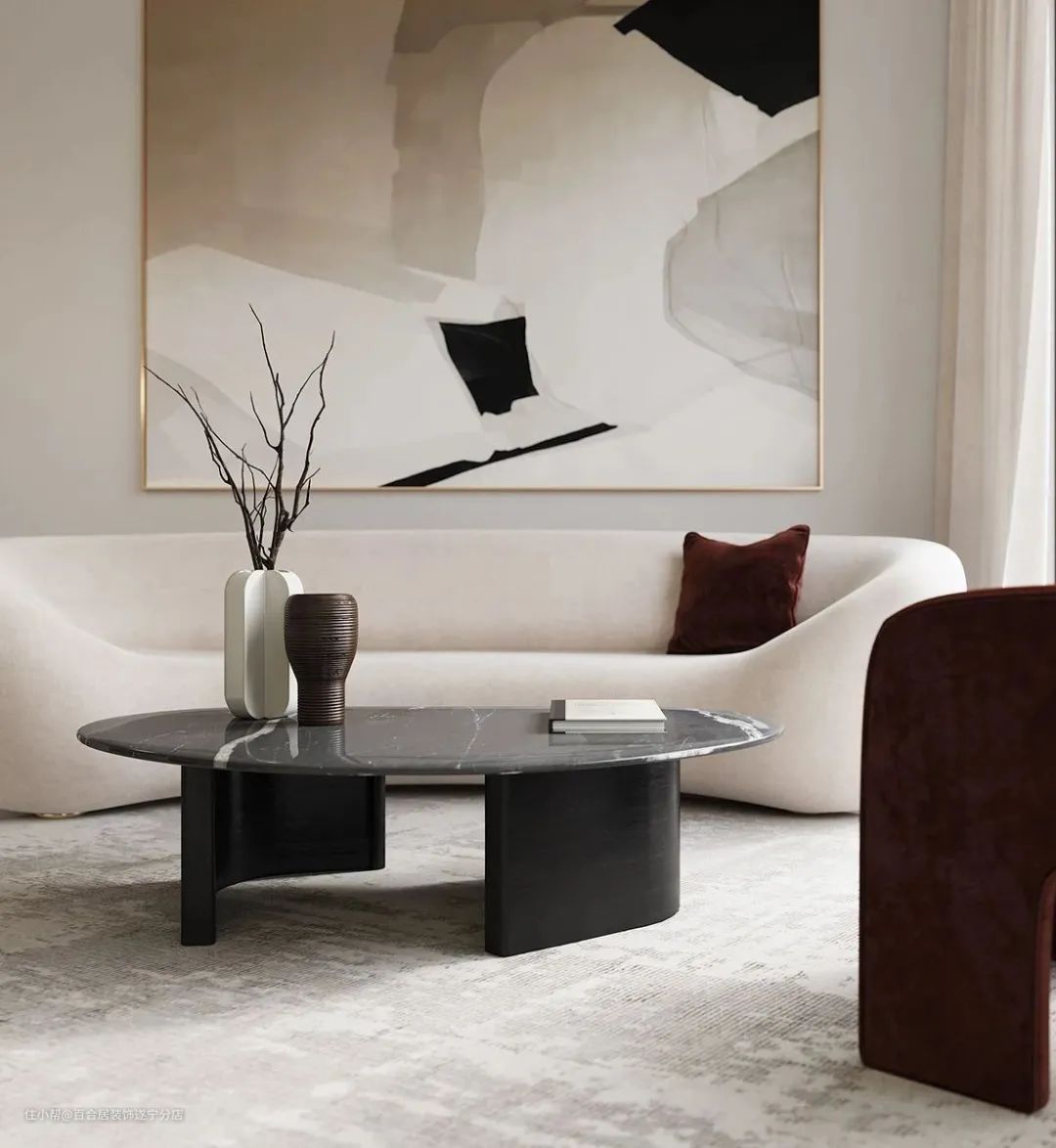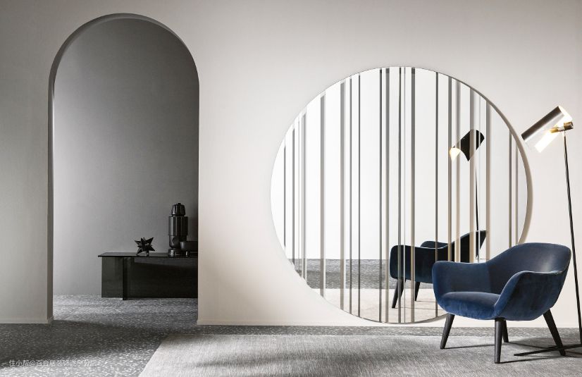 陶瓷、金属或亚克力摆件、金属框挂画现代感十足,材质本身的反光和穿透性可以让空间更加明亮轻盈。